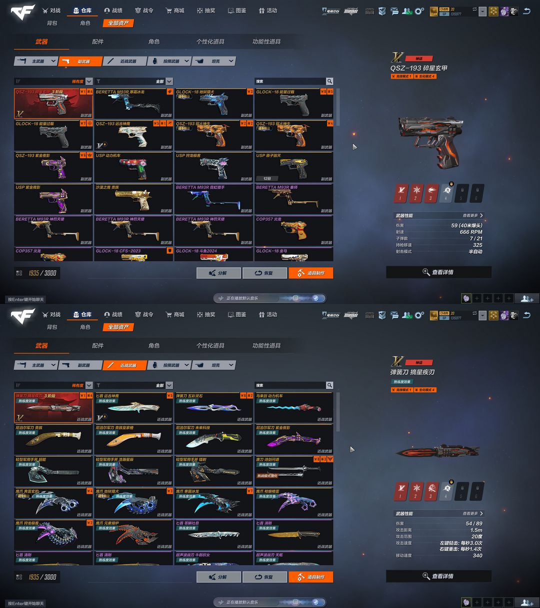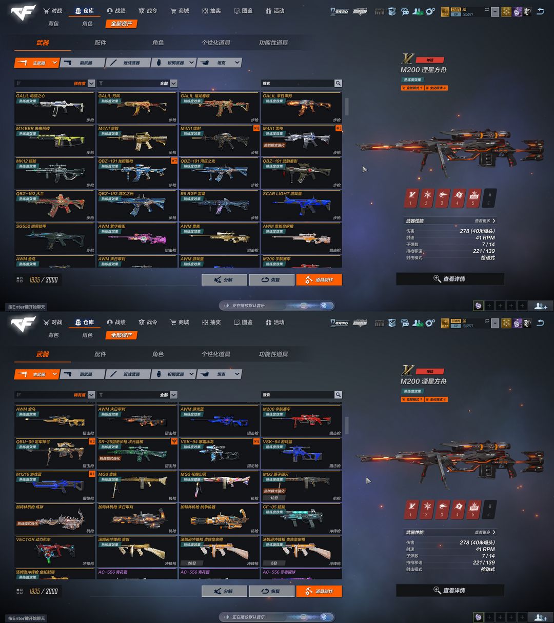 5神话160金M200湮星方舟炫彩神话✅FAM镭射✅G36望舒✅弹簧刀摘星✅五彩✅奔狼炫彩✅狩龙极客