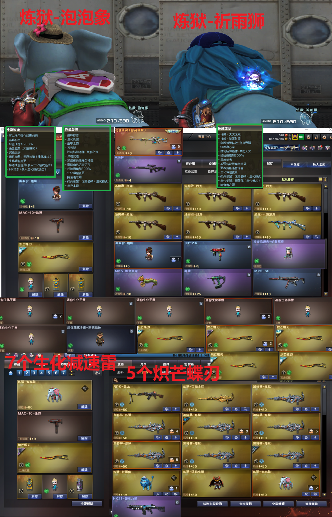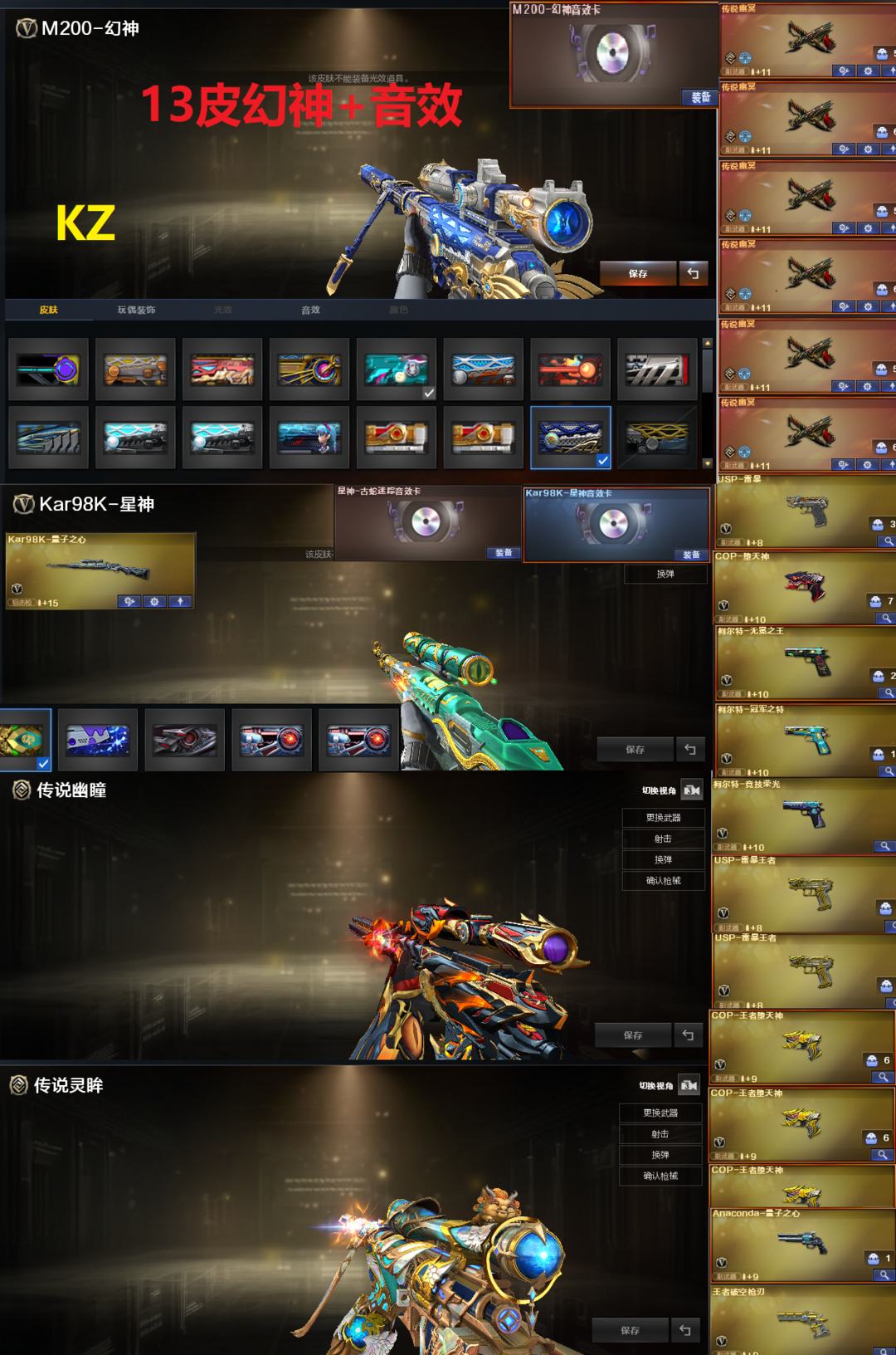装备描述:排位:可以------------生化四防极品(可以变更背包、查看生化僵尸血量):无需换弹、6烈、6炼狱、炼狱-泡泡象、炼狱-祈雨狮、斯泰尔蝴蝶、清道夫小人枪、毒蜂、双面神、炽火炎龙、炼狱小钢、传说圣灵、5炽芒蝶刃、7个生化减速雷、、、、、爆破四防:幻神13皮+音效(KZ、24AG冠军、传奇欧欧、星火小队、幻神-Heartshot皮肤、23世冠白鲨、星耀、白鲨、巅峰荣耀、星耀、2022、纸灯笼、黄忠皮肤)、传说幽瞳、传说灵眸、98K星神、M200-竞技荣光、、、2个雷暴王者、USP雷暴、6个传说幽冥、COP堕天神、无冕之王、冠军之特、3个COP王者堕天神、、、神威天绫、传说暗裔、传说圣谕、传说辉光、传说夜影、传说圣灵(序列号)玄豹白虎、G36幻影、银翼、QBZ金色蔷薇、王者白虎、、、幻神音效、裁决音效、星神音效、白虎音效、蔷薇音效、雷神音效、玄武音效、加特林音效、、、生化四防(神威莲华、虹儿、传说影煞、沙漠玫瑰、玫瑰花神)、爆破四防(传说女帝、传说星骇、云悠悠、关小雨、晴雅、王者迷迭香、王者惊若翩鸿、王者晴雅、王者雾萌萌、王者雨墨、王者云悠悠、王者岚兮儿、星际战将、研)