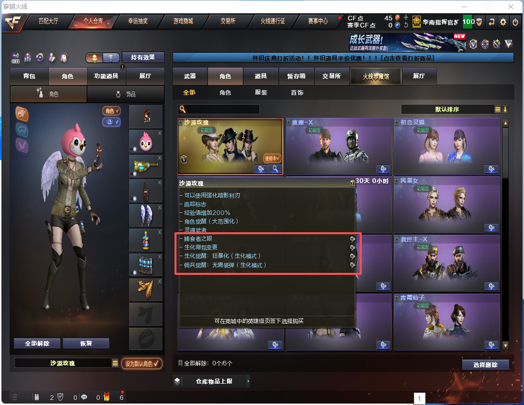 生化炽芒蝶刃♉沙漠玫瑰♉1追踪标志♉斯泰尔蝴蝶小毒蜂♉四防生化背包♉不退包满榴弹全弹匣♉伪6盘6烈