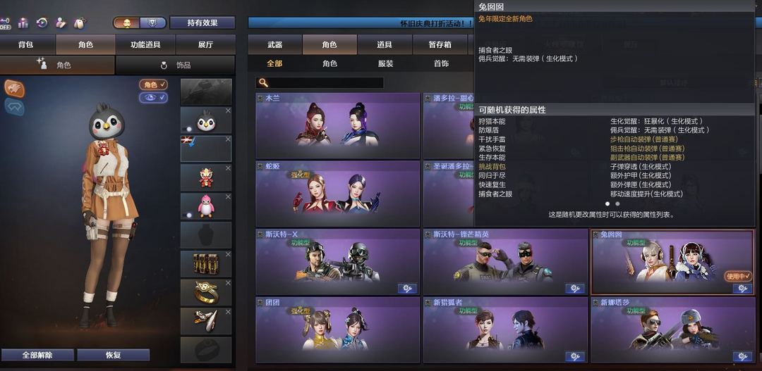 生化属性兔囡囡黑猫爪 黑鸟头生化背包变更 女圣泉炽血 死眼4烈2炼狱生化角色4/5防 蛇隐宗 猫枪