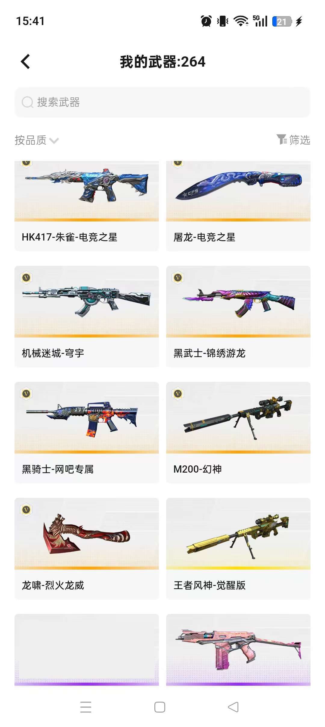 装备描述:幻神电竞之星,双幻神,g36c幻影,加利尔天袭,usp,qbz电竞之星,王者风神