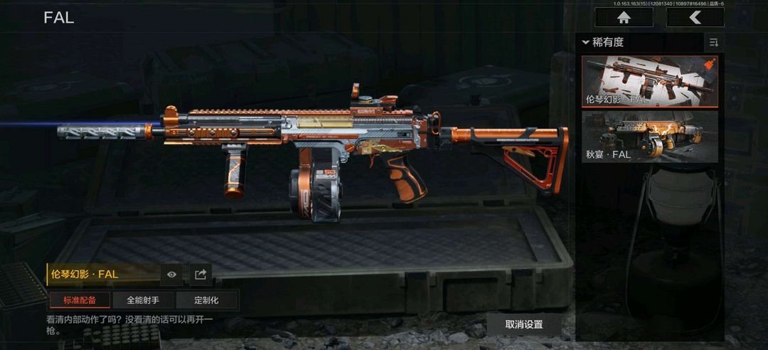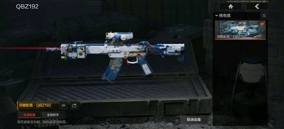 伦琴幻影FAL,包络战术AKM,告丧夜曲AUG,战术大师AEK,旗帜AEK,告丧夜曲AR57,战术大师AN94,旧王圣谕QBZ191,浮鳞影青QBZ192,骑士之剑AKM,逆火玄石AKM,缟兵玄墨AKM,来战AKM,历战AKM,潜渊蛇鳞M4A1,骤羽尖啸M4A1,幻域莎绫M4A1,鱼跃丹青DTMDR,竞技MDR,北国内卫MDR,鱼跃丹青AK102,快AR57,涂绘猎人AR57,无声暗月AR57,棱光裂变ACE31,骑士之剑ACE31,伦琴计量AN94,北国内卫AN94,典礼武备Groza,伦琴计量SCAR,巡林客T951,骑士之剑T03,利齿风暴T03,火绒AK12,典礼武备MCX,07式林地迷彩QBZ191;利齿风暴MPX,边缘矢量MP