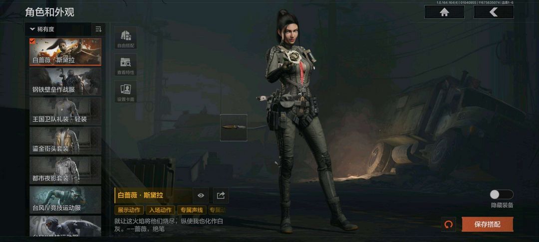 装备描述:白蔷薇斯黛拉,钢铁壁垒作战服,鎏金街头套装,都市夜影套装,台风IV竞技运动服; 【上衣】少前联动AK15;战术甲胄防护手套,冬日手套,急袭手套; 伦琴幻影FAL,竞技FAL,午夜梦魇FAL,包络战术AKM,伸冤者迷踪M4A1,蓝色咆哮H416,伦琴幻影AX50栓动步枪,告丧夜曲AUG,告丧夜曲AR57,旗帜AEK,冬夜AK12,旧王圣谕QBZ191,浮鳞影青QBZ192,乌金黑曜QBZ192, 和平之手FAL,突围FAL,棱光裂变AKM,来战AKM,潜渊蛇鳞M4A1,幻域莎绫M4A1,德尔塔小队M4A1,鱼跃丹青DTMDR伦琴计量AK74N,来战AK74利齿风暴T03,玄戈梨花T03,林地数码T03,鱼跃丹青MCX;利齿风暴MPX,掌中盾MP Vector45,伦琴计量Vector45,战术大师Suomi,超越自我Vector9;棱光裂变QBU191,高塔之内VSS,白狼连队VSS,战术大师SVDS,伦琴计量SVDS,典礼武备MK14, 棱光裂变莫辛,白色丧钟莫辛,超越自我AR30,战术大师SJ16,护命金翎M24;娜迦RPK16,壁垒RPK16,飞鲨RPK16;粉绒臻选SKS