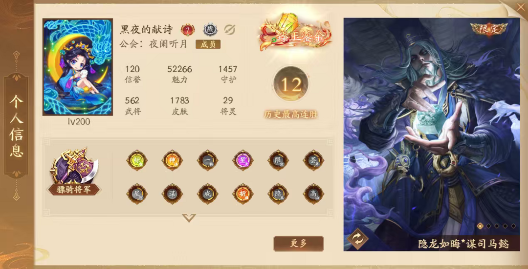 【武陆逊+准全阴全灯+臻玉鎏金】562将骠骑+十神武五威二十一谋(七大谋)九乐五隐+臻玉鎏金+武陆逊+神马超(惊雷动)神张飞(山河限+双传)神张角(震泽动)神邓艾(撼宇动)神典韦神许褚(虎跃动+摧城限)神华佗(五灵传)神黄忠神庞统(臻华动)神姜维(炽剑动)+威张辽威吕布(传)威董卓威马超威孙权(传)+谋周瑜(江山限)谋鲁肃谋司马懿(隐龙动)谋郭嘉谋贾诩谋荀彧谋姜维谋司马师(传)谋关平(传)谋邓艾+乐蔡文姬(姝丽动+和鸣传)乐诸葛果(传)乐祢衡(传)乐大乔(传)乐小乔(限动)乐貂蝉(传)乐周瑜+钟毓夏侯徽夏侯玄张怀(限)刘衿刘佩庞宏庞凤衣(传)袁胤(传)许靖(丹枫动+枫红传)诸葛京(传)孙翎鸾芳兰(限动+传)周宣(幻华动)薛灵芸(翠鸾金蛟动)曹芳(冰天限+传)张嫙(双姝动)曹金玉(青花瓷动)卢弈(姝丽动+黛眉传)张琪瑛(至臻动+潋滟动)笮融(佛魔动)刘晔(焚天限)等!全将星全国战!