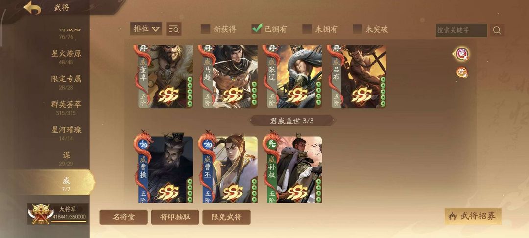 604武将顶级大将军,三武庙,配置几乎拉满。只差高山,武皇和几个废将没搞,有缺将图可以看一下