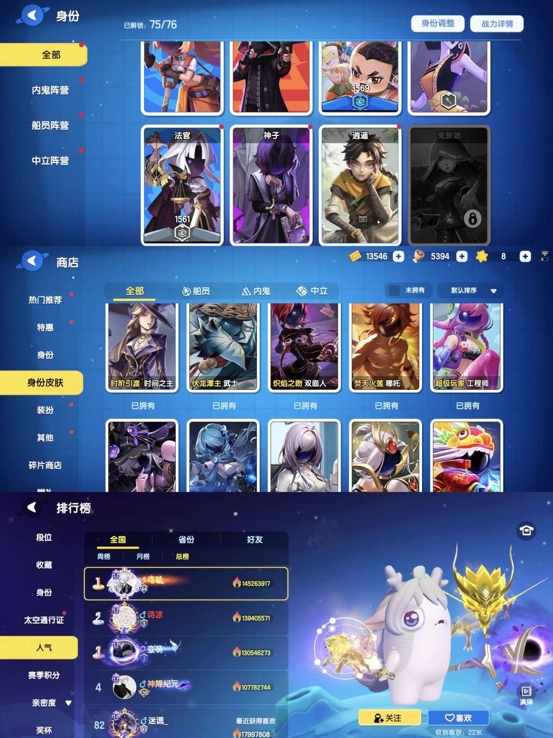 官服时阶引渡者贵10❤️1100皮❤️1700万人气❤️60神话300传说3神宠❤️人气榜全国82名