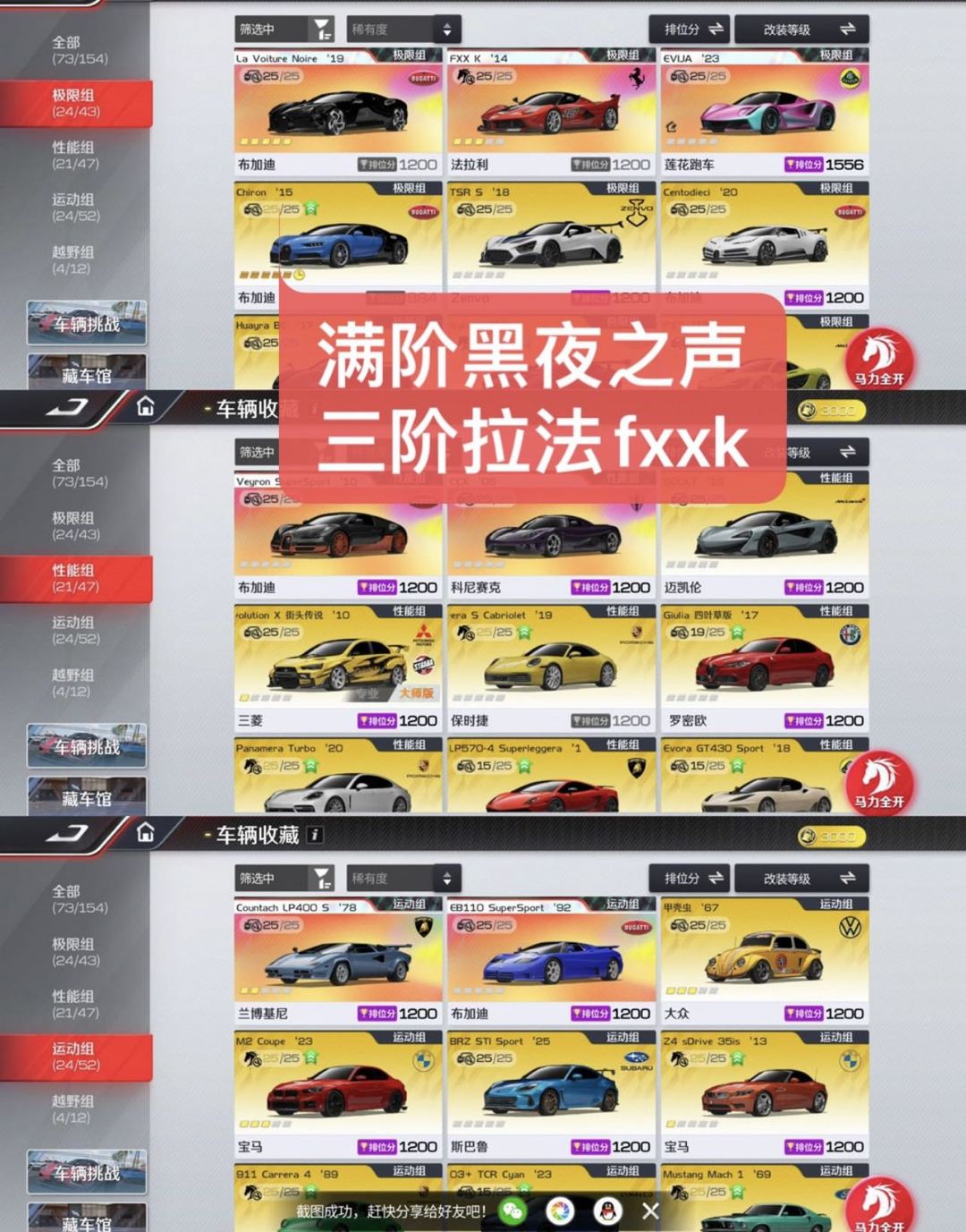 最新极限双神✅满阶布加迪/黑夜之声/三阶法拉利fxxk
