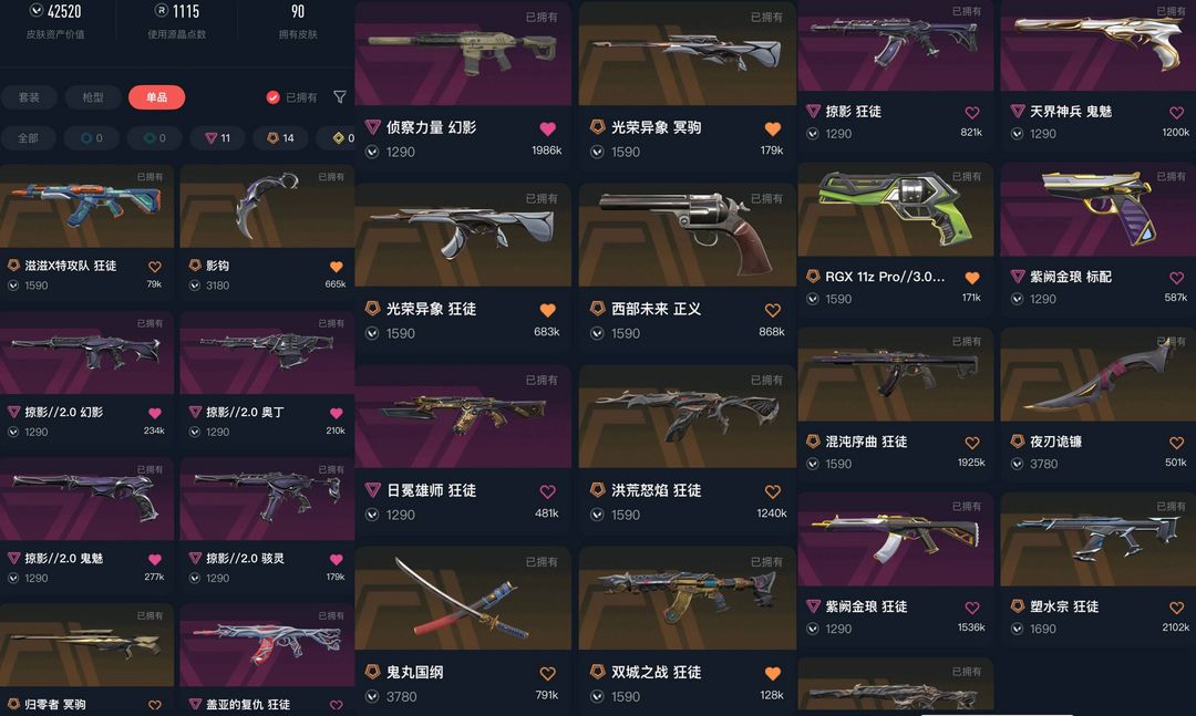 武器皮肤数量:91
