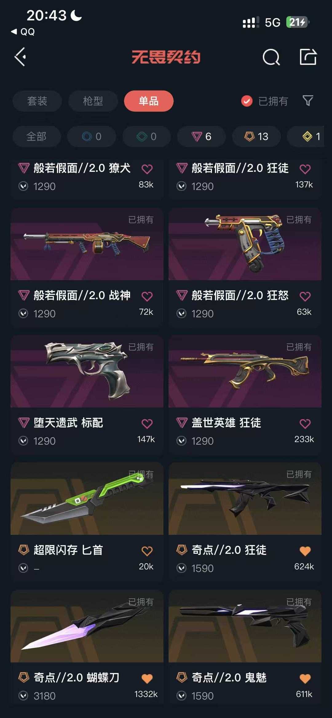 6w库存⭐️星守塑水宗ak⭐️显卡刀套⭐️假面套⭐️鬼刀剥皮小刀⭐️哨兵套⭐️奇点套⭐️应援棒蝴蝶刀