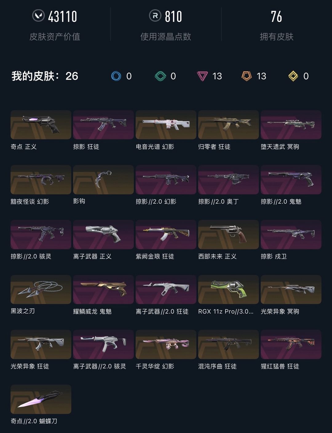 武器皮肤数量:77