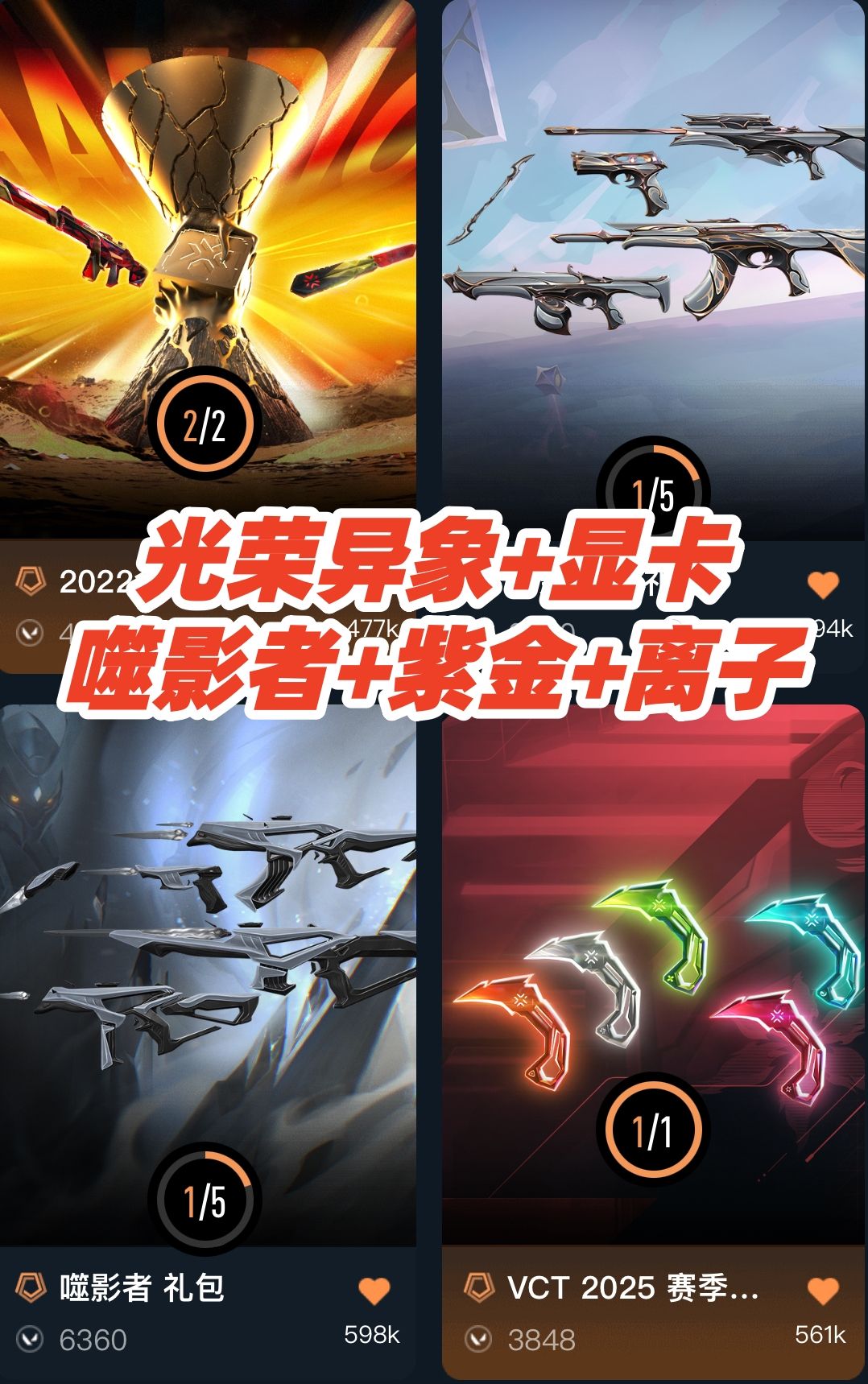 可排✅精品库存⭐光荣异象噬影者显卡离子2日冕雄狮洪荒怒焰紫金⭐vct爪刀解离器蝴蝶刀⭐电音光谱侦察