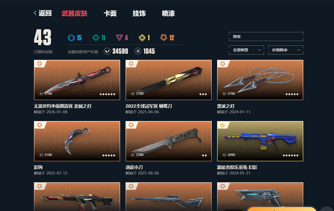 冻结重上⭐怜悯之刃⭐22冠军套⭐塑水宗⭐黑波之刃⭐掠夺爪刀⭐堕天大狙⭐剥皮小刀⭐电玩M4⭐