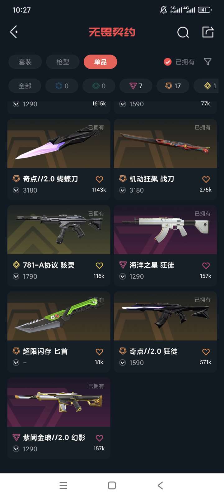 使用外挂脚本导致非正常游戏封号的,在平台提取租客实名iP地址,本账号经过网络财产备案,一经发现直接报警处理立案追责,根据账号价值全额赔偿,感谢支持。 刀皮:奇点蝴蝶 盖亚之愠 掠夺爪 机动狂飙 夜刀诡镰 ak:盖亚 混沌 狮子 奇点 鱼缸 塑水 虚空遗器 m4:侦查 显卡 紫金 左轮:奇点 西部 鬼魅:盖亚 大狙:弃王 骇灵:781