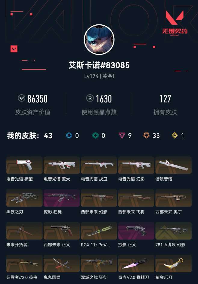 武器皮肤数量:127