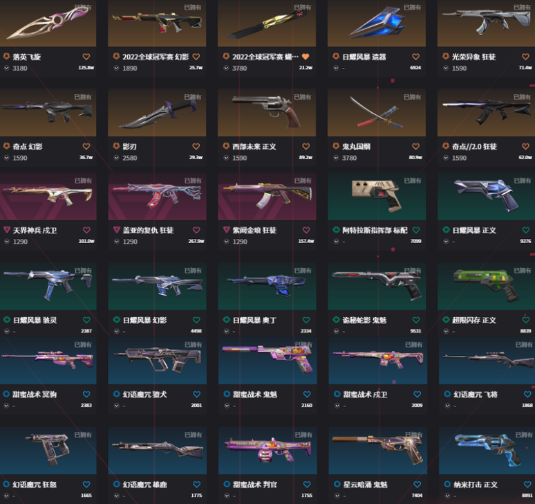 冻结秒解☆可排位☆精品库存☆22全球套☆落花飞旋☆少爷刀☆光荣异象AK☆盖亚AK☆紫金AK
