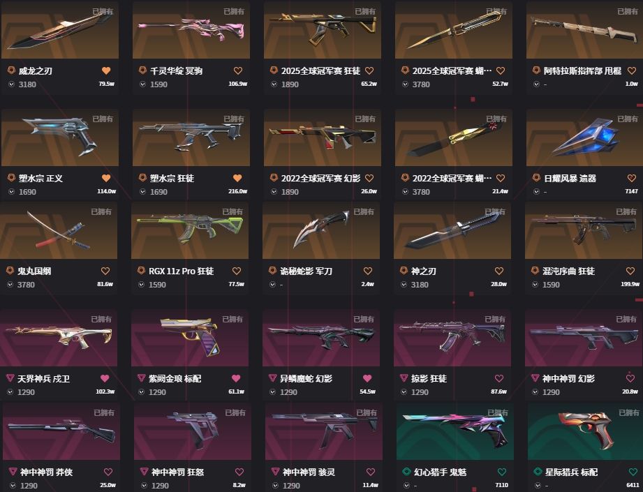可排⚡自动解冻⚡6万库存⚡22/25套⚡神之刃/太刀/威龙刃⚡混沌塑水宗掠影显卡ak⚡魔蛇幻影