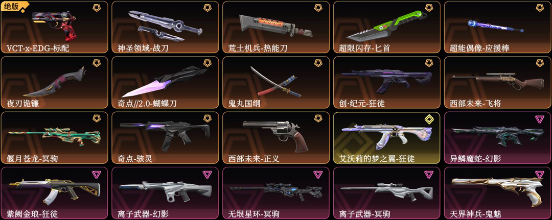 可排位大库存☆艾沃莉☆紫金☆奇点☆鬼丸☆创*纪元☆西部☆VCT☆离子☆夜刃☆异鳞魔蛇☆各种散件☆炫彩