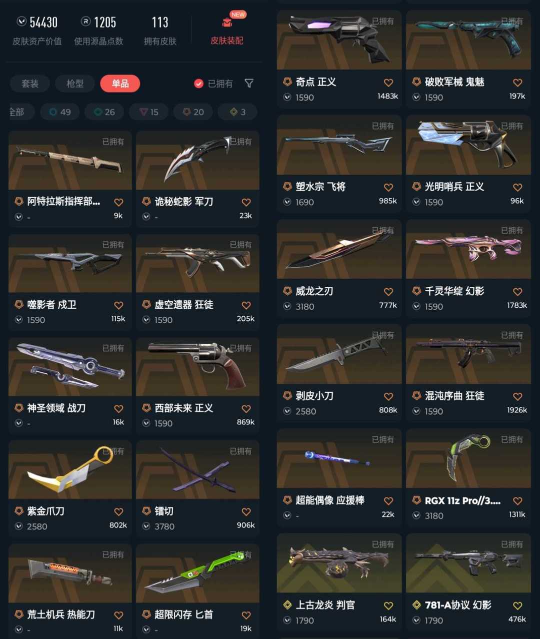 武器皮肤数量:113