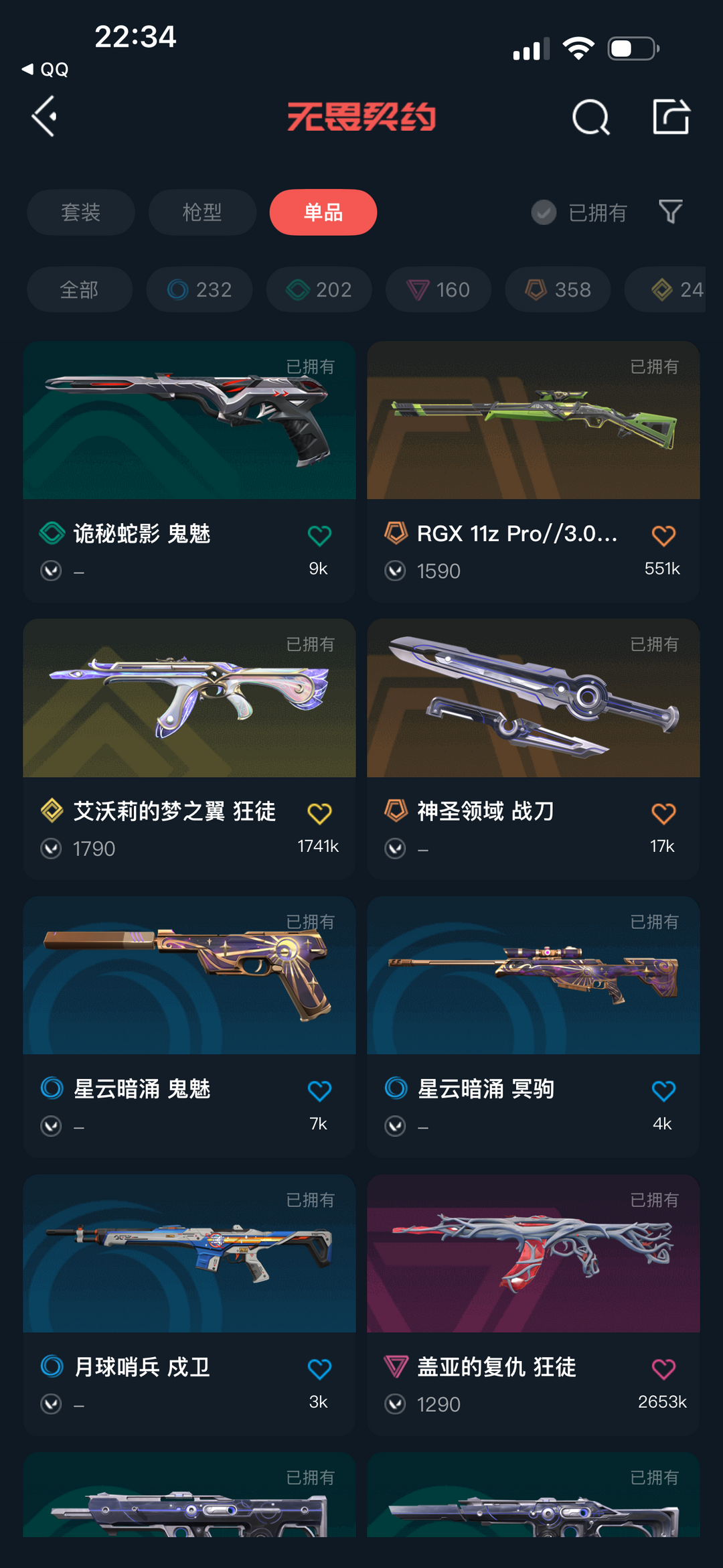 步枪:(偃月苍龙 狂徒 炫彩3);(艾沃莉的梦之翼 狂徒 炫彩3);(混沌序曲 狂徒 炫彩2);(混沌序曲 狂徒 炫彩1)