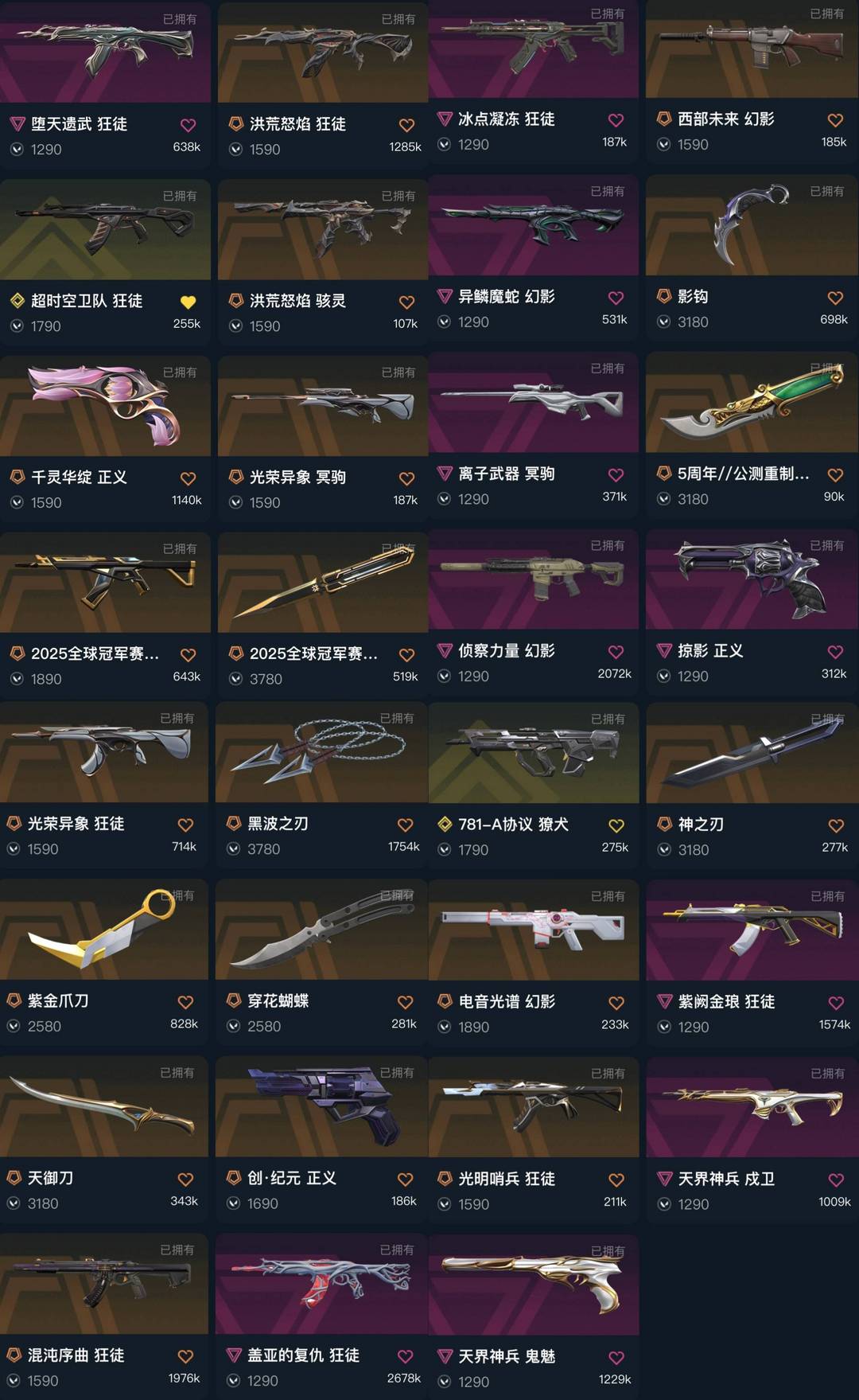 禁排✅6万⭐光荣异象超时空卫队弃王洪荒25冠军套混沌盖亚紫金⭐黑波之刃影钩神之刃蝴蝶刀紫金爪刀天界