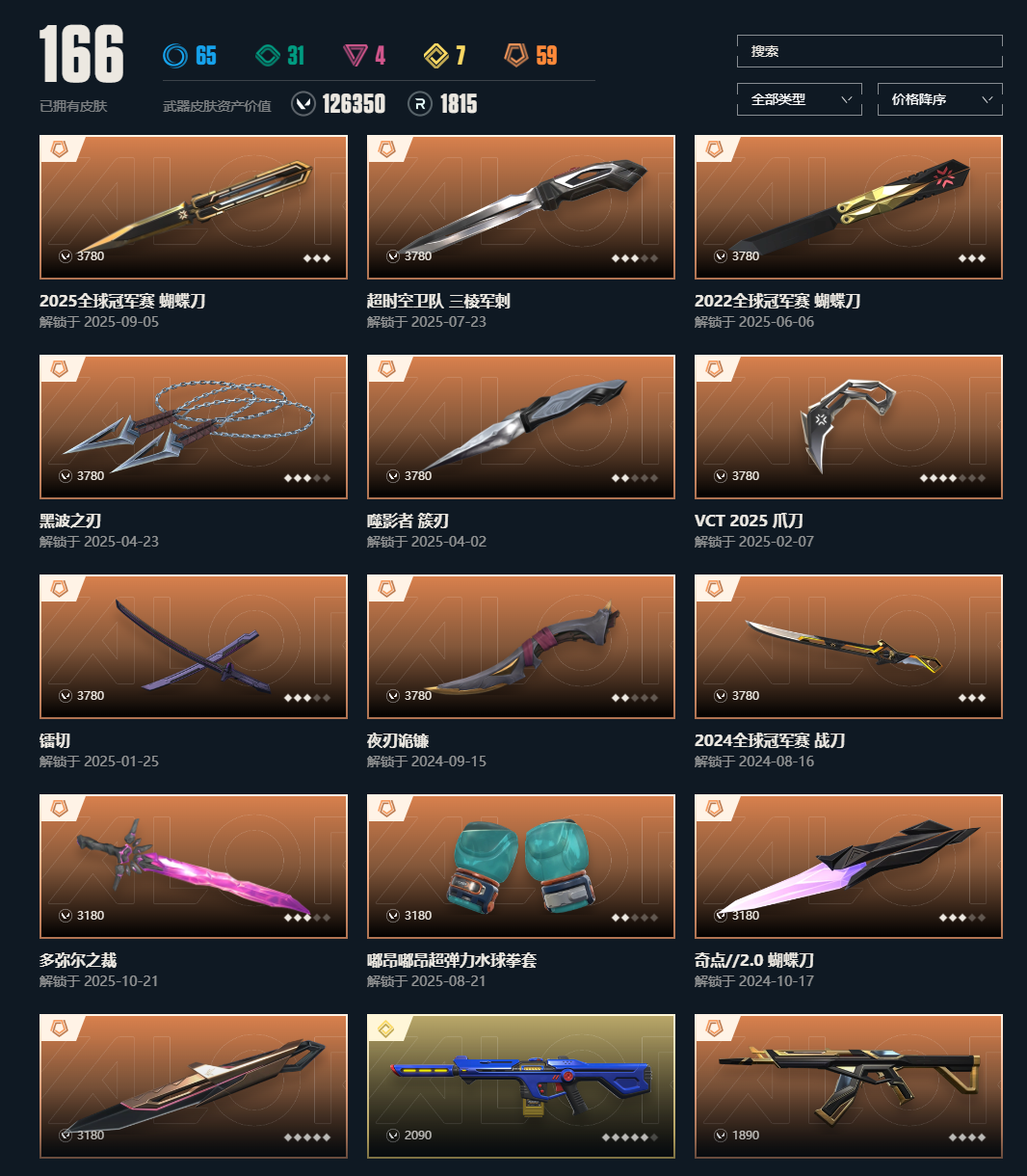武器皮肤数量:166