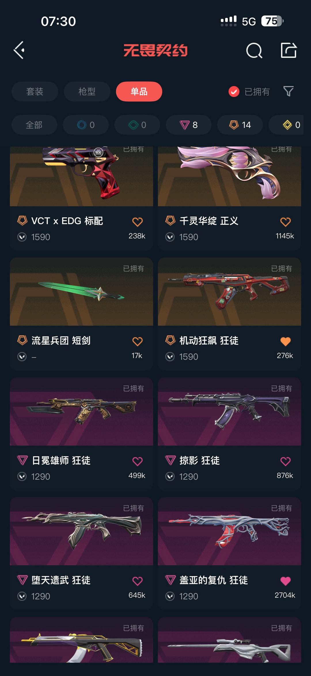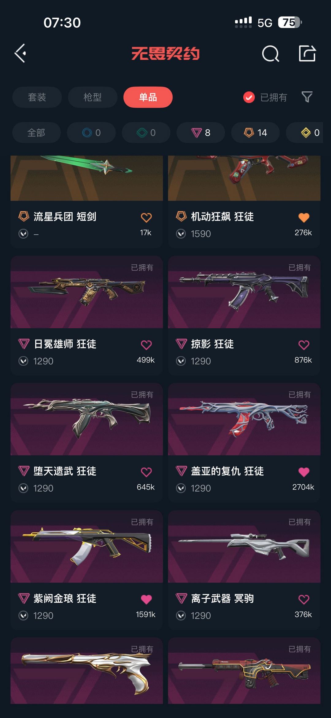 伯金全英雄可排位,八把狂徒皮肤,三把刀皮,三把正义皮,离子大狙,天界鬼魅,般箬幻影
