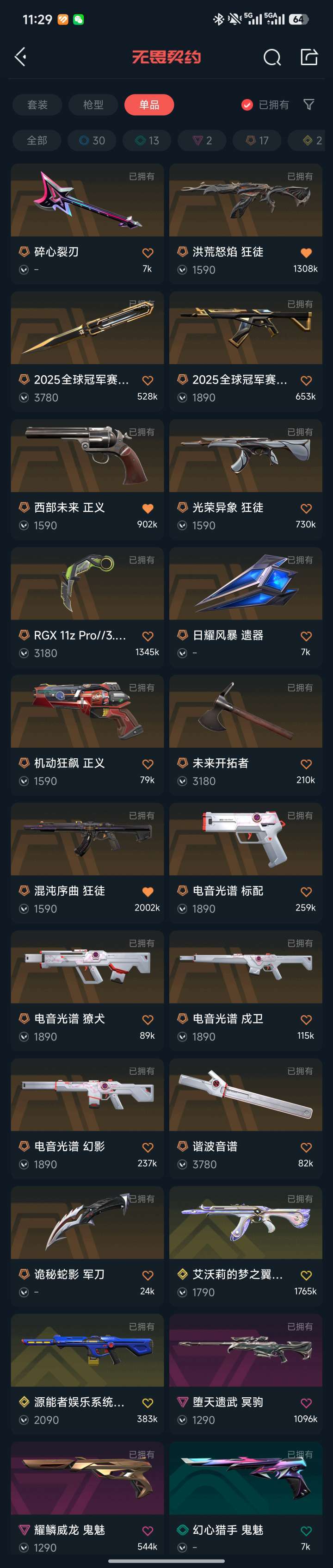 武器皮肤数量:64