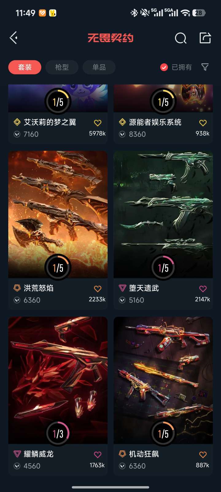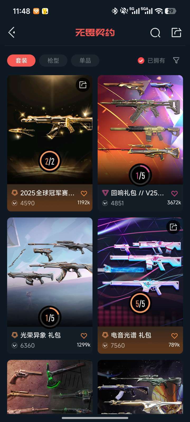 25年冠军套,光谱套,混沌,流脓,猫猫ak,西部正义,堕天坠武大狙。西部未来手斧,光谱爪刀