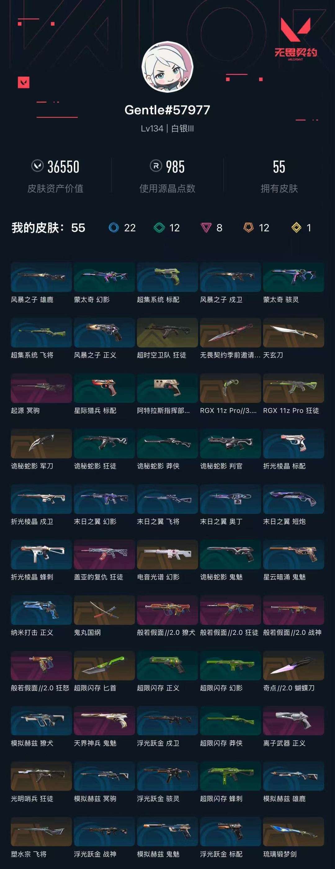 武器皮肤数量:55