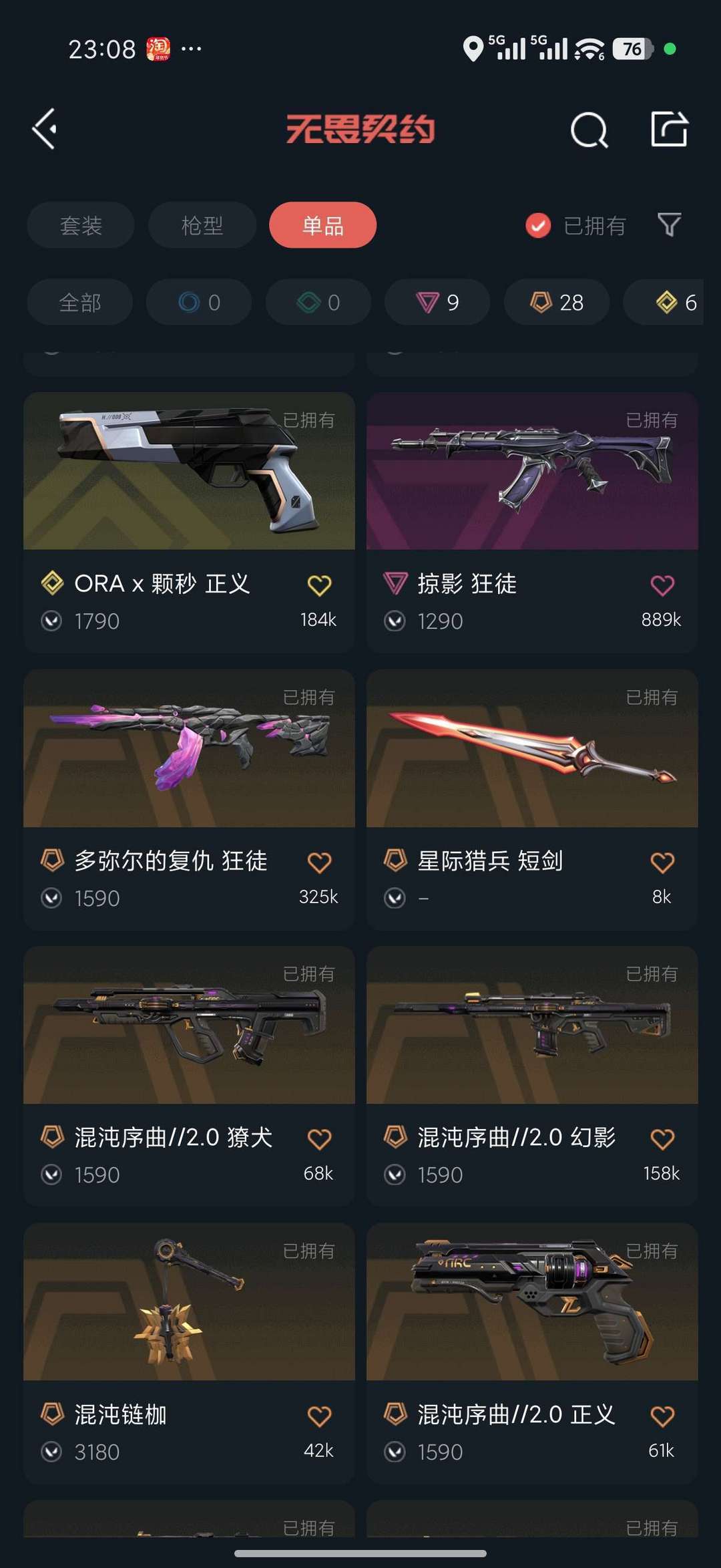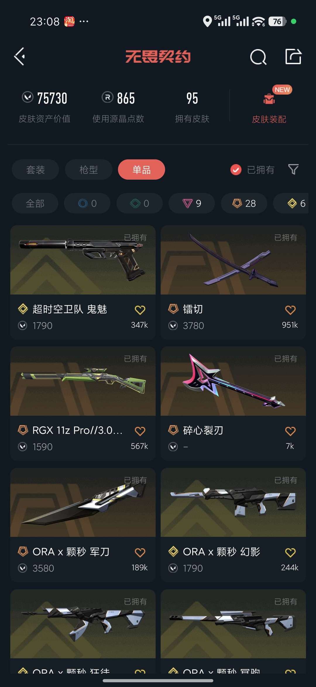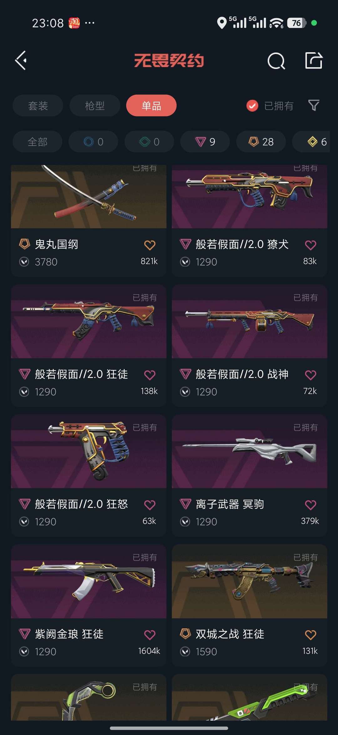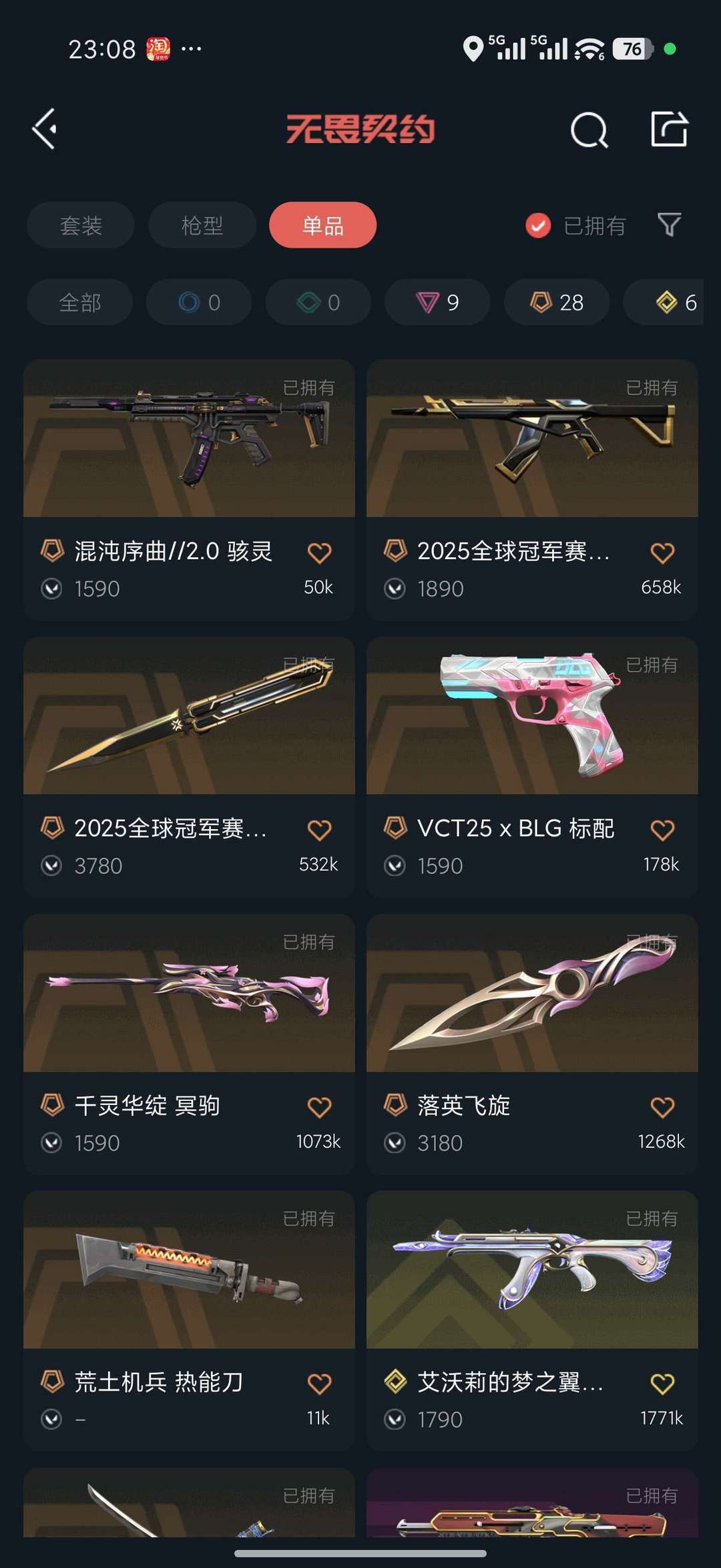 冠军 颗秒套装 鬼丸国纲 掠夺2.0 超时空鬼魅 璎落 显卡爪刀 显卡莽侠