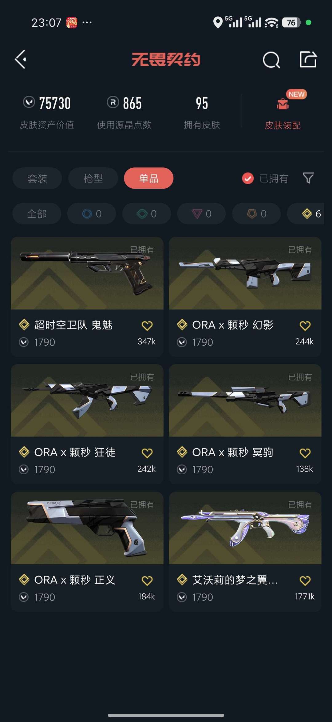 武器皮肤数量:95