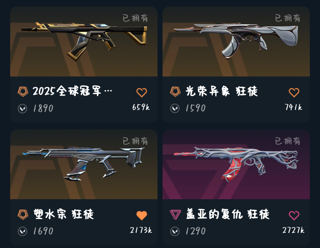 全英雄,怜悯之刃25ak显卡爪刀离子正义起源大狙24年vct标配G2古神獠犬天界戍卫掠夺追猎