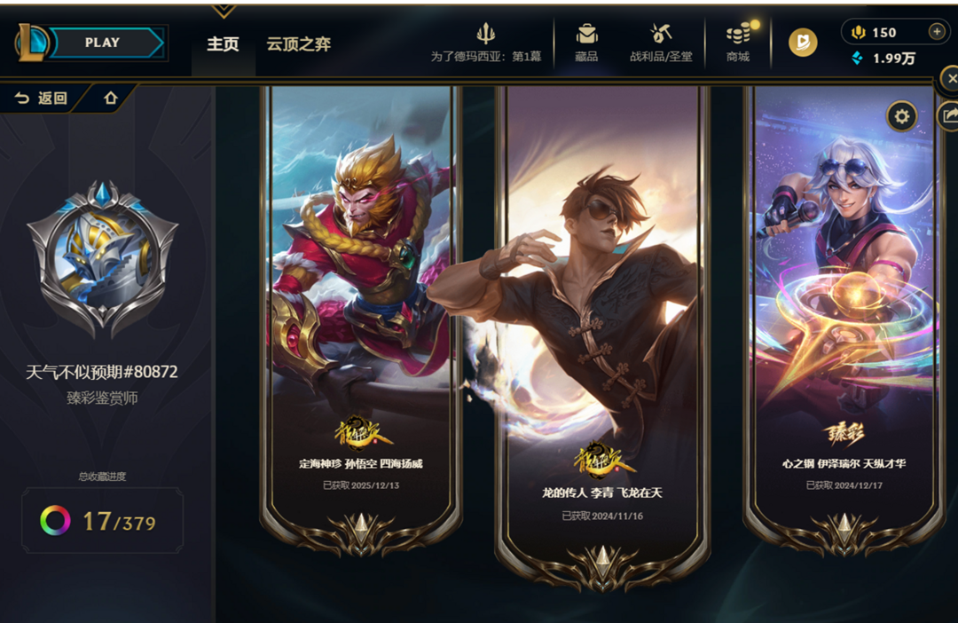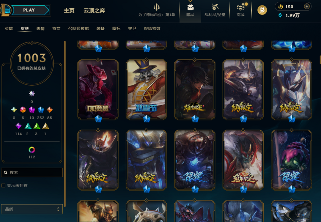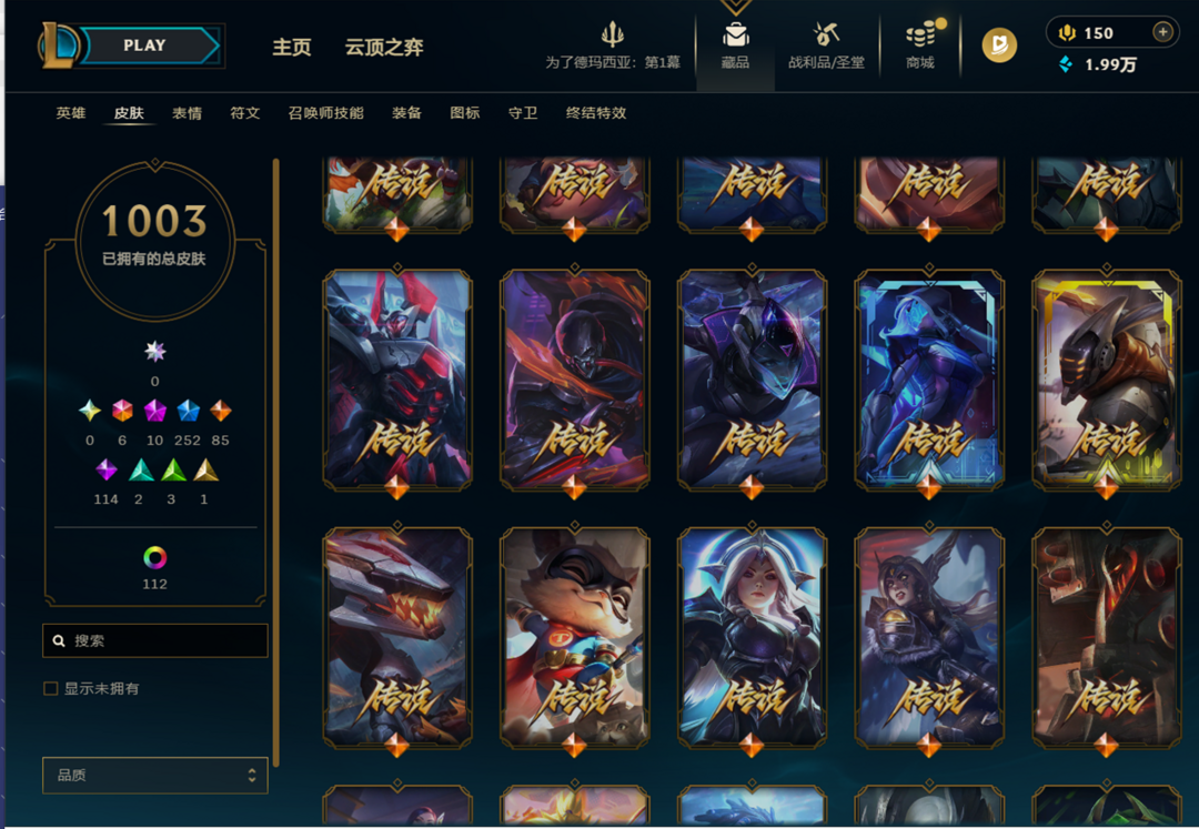 艾欧尼亚8000P〓神话幻想圣洁堕落的神王龙瞎臻彩飞龙在天EDG套〓王国机神黑夜使者真实伤害85传说