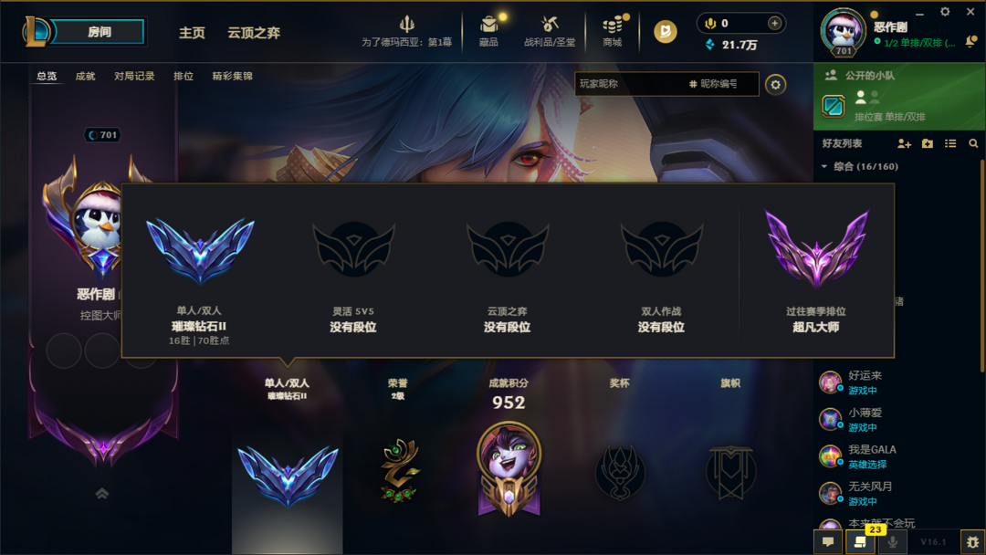 S16钻石可排位❤️单双钻石❤️ID可查❤️高分高端局体验❤️艾欧尼亚❤️带妹首选高隐藏分多赛季高分