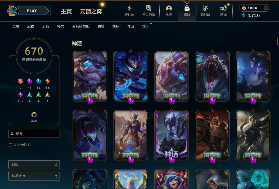 ~~出现异常~~多登入几次即可 ~~喜欢记得收藏~~可排位~~1400皮全英雄丨691原皮448炫彩丨48神话/至臻/海克斯丨金卡莎丨泳池女警丨破败锤石丨御星艾希丨幻灵女枪丨哨兵薇恩丨水晶婕拉丨玉剑女刀丨女帝卡特丨斗魂莎弥拉丨莲华亚索狐狸丨神龙李青艾希卡莎丨星守卡莎伊泽风女~~租之前尽量查一下游戏ID,确保段位是您需要,避免浪费您的时间~~请勿挂机逃跑故意送人头,谢谢合作,谢谢~~