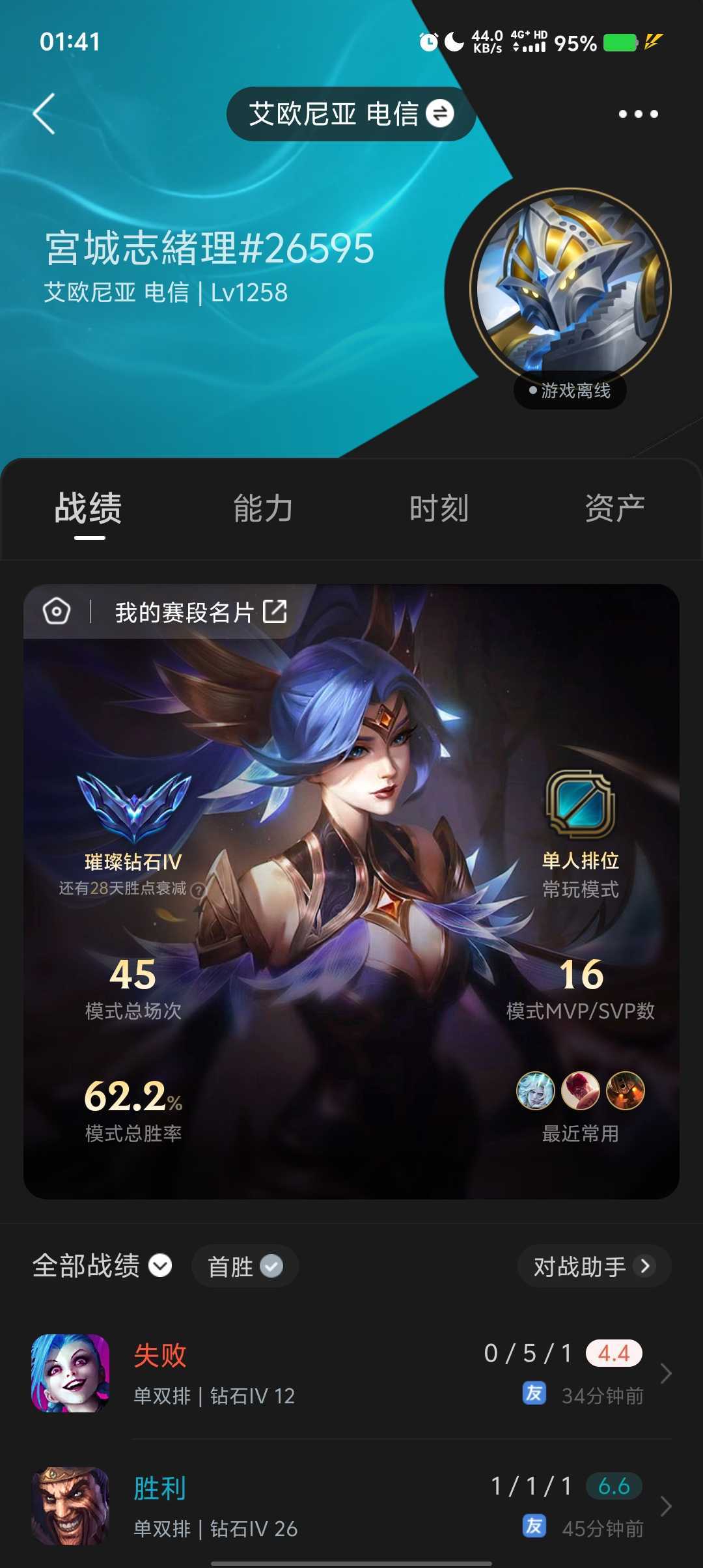 s16钻三钻四520皮肤多场次本地人单双钻三钻四单双排负胜率拉分全英雄500+皮肤艾欧尼亚