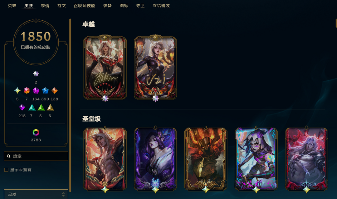 【可排位】1850原皮❤️308臻彩❤️10色龙虾❤️全套年限❤️全海克斯❤️各种稀有限定皮❤️