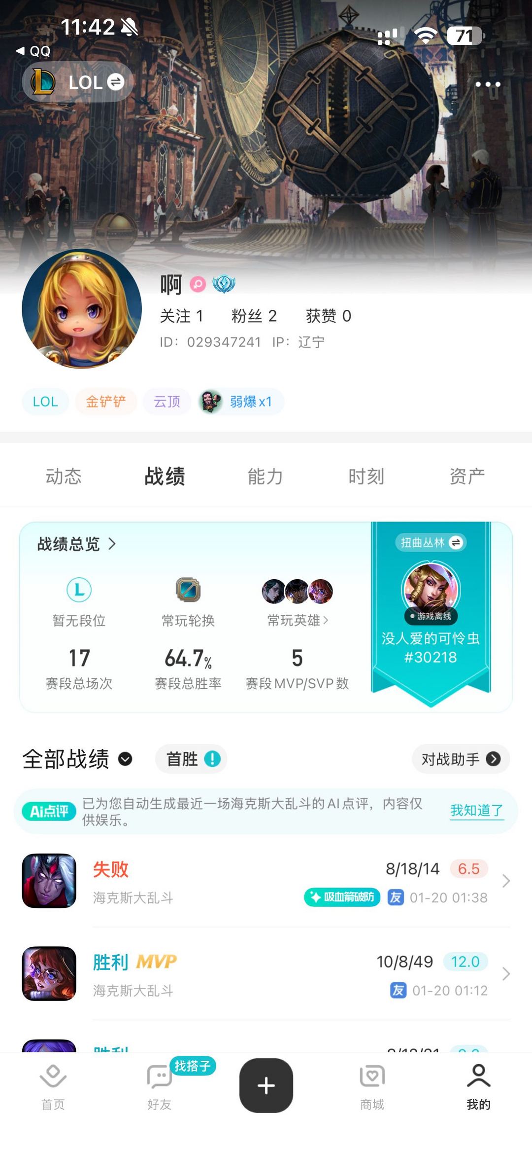 全英雄500+皮肤,单双黄金一段位,过往白银,灵活暂无段位,过往白金,有龙虾等限定皮肤