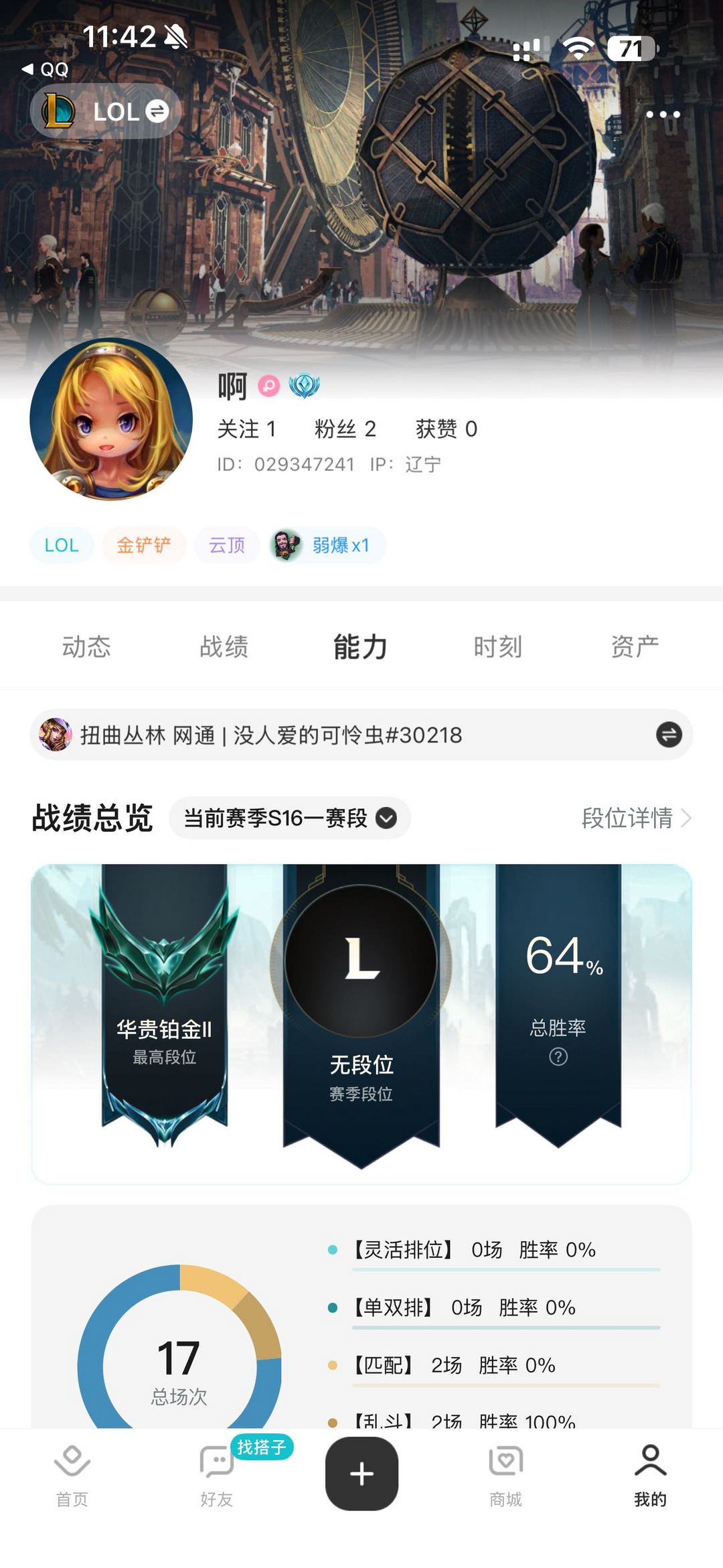 段位:621级 华贵铂金IV