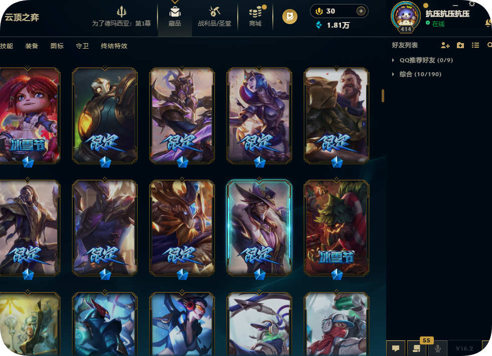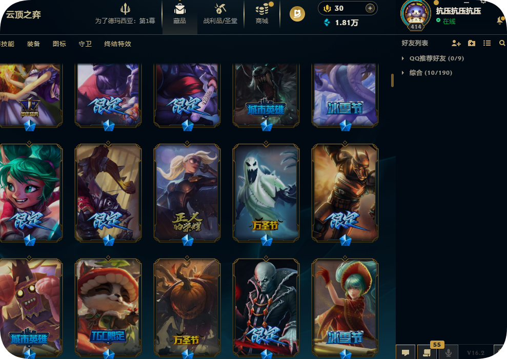 800皮肤全英雄可排位海克斯皇子SKT沙皇卡莉斯塔冰雪节波比灌篮高手西部卢锡安蔷薇杰斯电玩飞机赵云