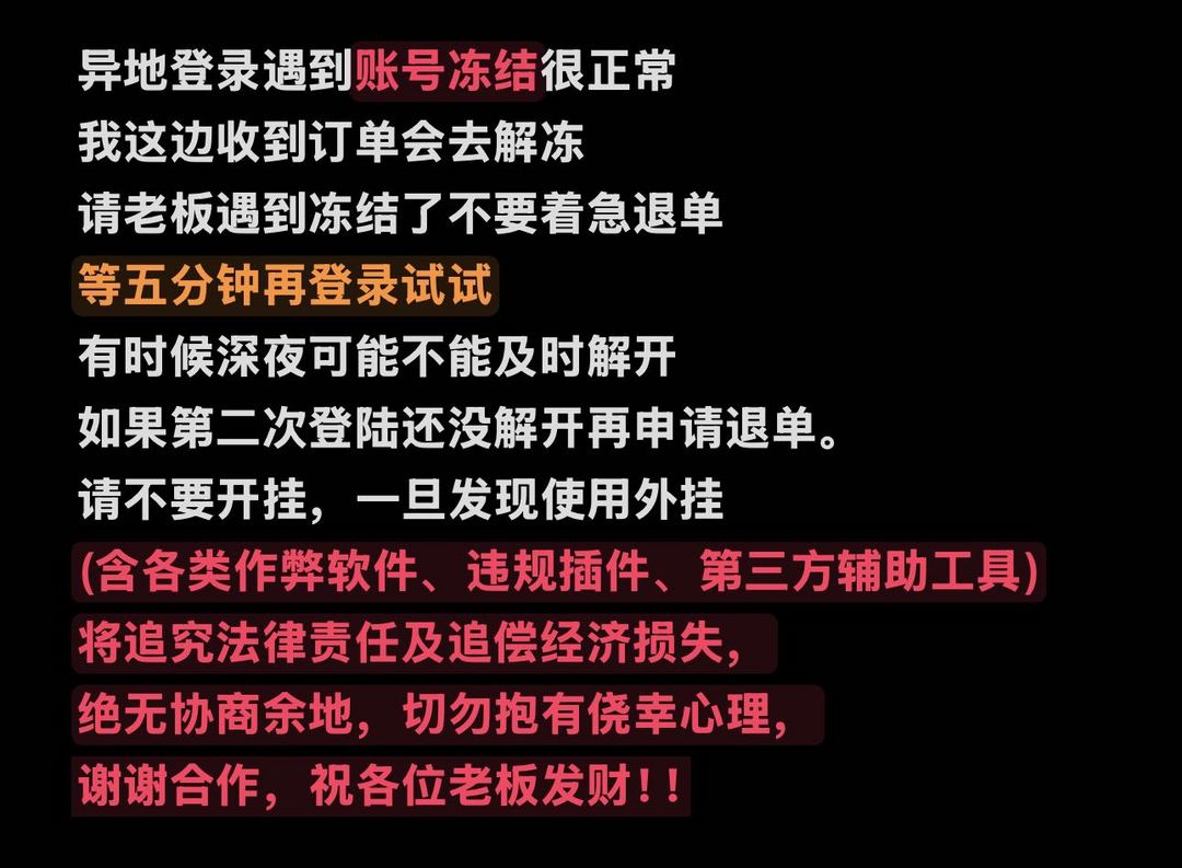 禁止利用账号进行开挂、使用辅助违规软件诈骗等违规操作。喜欢本账号请点 ☆收藏☆ 方便下次租用,谢谢光临惠顾!毁号行为涉及毁坏虚拟财产罪及计算机安全罪,请文明游戏素质游戏,让我们共建美好租号平台!