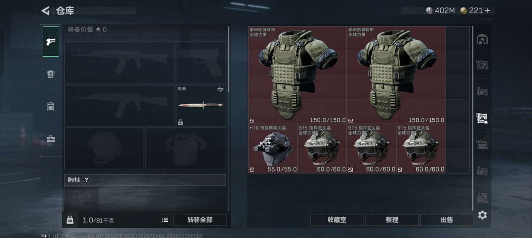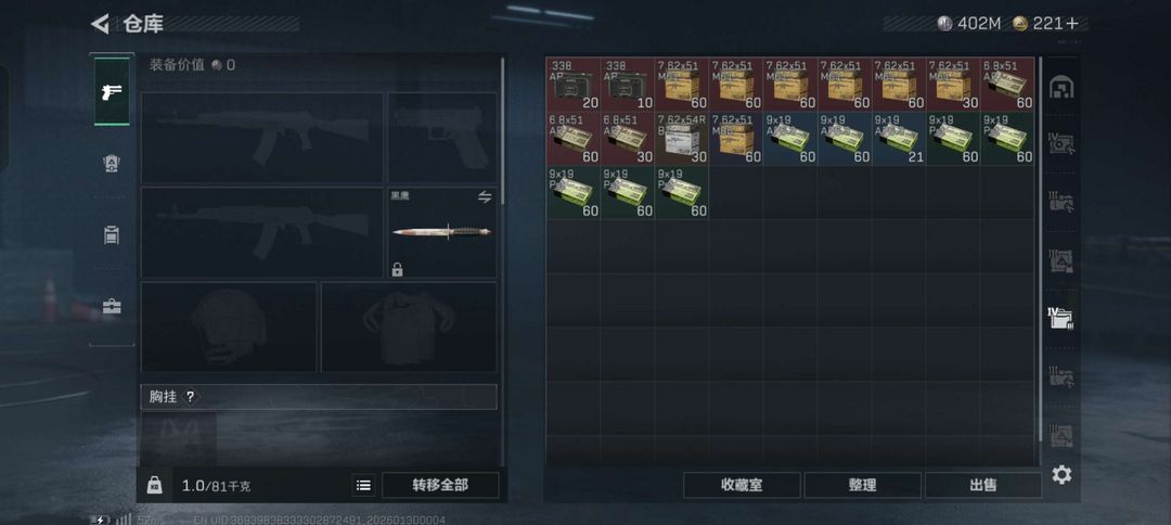 亿级哈夫币 两个干员皮肤。几百发红蛋儿,纯币400多m.仓库总价值530多m,六头六甲,不要动收藏室,其它都可用