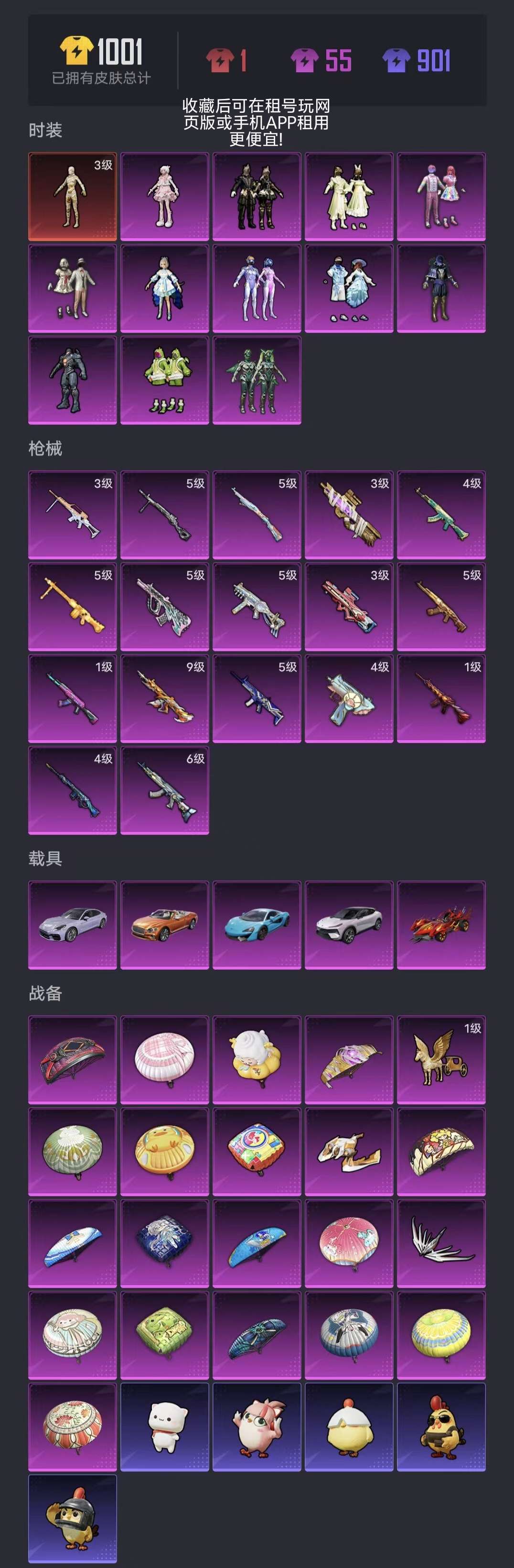 【苹果Q区】红装沙丘之主图卡盟9级至情至圣12粉装17粉枪5载具梦幻火箭洛天依