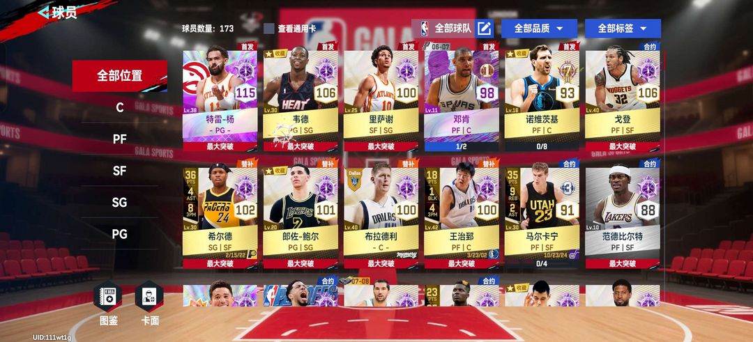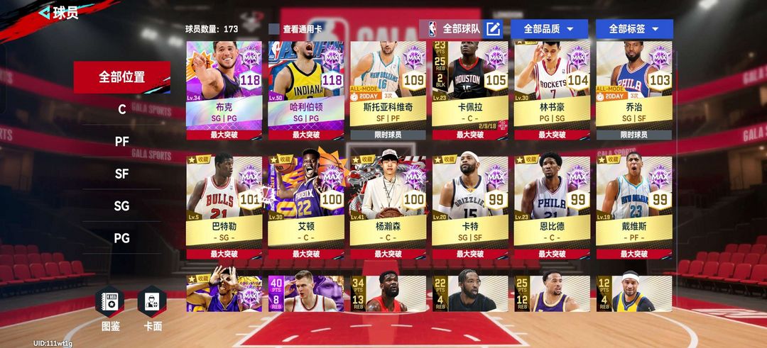 nba巅峰对决,包含多种满突角色,哈利伯顿,尼克杨,特雷杨,布克,恩比德,杨瀚森等满突金卡球员