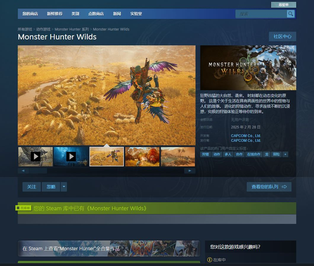 游戏区服:怪物猎人:荒野 > steam > steam