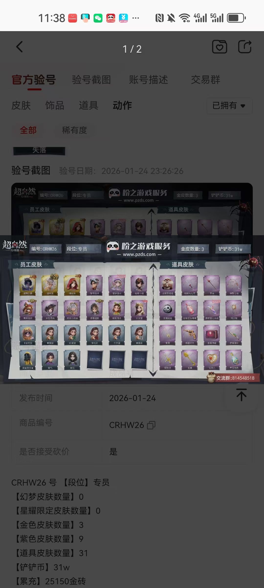 装备描述:【金色皮肤】零-渡鸦公爵、逍遥-莲华渡、巫铃儿-镜花辞 【紫色皮肤】艾伦-黎明猎手、薇薇安-仙锋小姐、爱丽丝-甜梦派对、莉莉-莓果陷阱、小黄-异色序曲、莉莉-除妖小师妹、薇薇安-白光莹、逍遥-绣春逍影、小黄-呱呱雨衣 【道具皮肤】急救包-土拨鼠捏捏、腰包-宝剑八、摸金符-祝祷词、铲子-龙鳞、夜视仪-金丝眼镜、急救包-蔷薇物语、转轮手枪-新星时代、专业手电-星寂、音响-鸣沙鼓、黄牛能量饮料-青玉抱丹、传送按钮-昆仑镜、腰包-惊魂娃娃、腰包-私藏的银河、音响-冬夜暖忆、音响-happy猫、长鞭-缚誓之锁、短管猎枪-赞萌露比水枪、喷气背包-乘风溯雪、黄牛能量饮料-珍珠芭乐莓莓、摸金符-紫霄、额外的背包-飞花令、刺刀-铂刺与红萼、桃木剑-凤鸣九天、葫芦-伏妖塔、刺刀-碧络琅环、背饰-天使的呼唤、背饰-蝶恋花、背饰- 【美妆】暗夜小恶魔