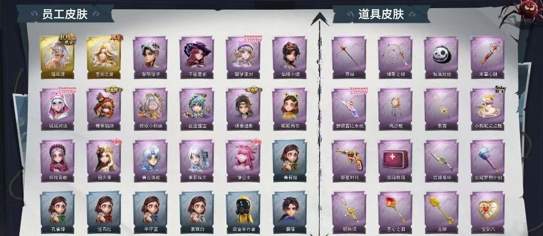 装备描述:【金色皮肤】逍遥-莲华渡、薇薇安-圣光之谕 【紫色皮肤】艾伦-黎明猎手、兰-千夜星谕、薇薇安-仙锋小姐、爱丽丝-甜梦派对、艾伦-绒绒对决、莉莉-莓果陷阱、阿念-迷途僵宝、莉莉-除妖小师妹、莉莉-情公主、薇薇安-白光莹、零-青云逸歌、巫铃儿-素影瑶光、爱丽丝-丝缕哀歌、逍遥-绣春逍影、小黄-呱呱雨衣 【道具皮肤】转轮手枪-新星时代、喷气背包-乘风溯雪、专业手电-云端梦想计划、腰包-惊魂娃娃、急救包-末章心跳、短管猎枪-赞萌露比水枪、长鞭-小狗蛇点点鞭、摸金符-祝祷词、腰包-宝剑八、摸金符-紫霄、音响-鸣沙鼓、闪光弹-金戈玄铜、铲子-龙鳞、长鞭-缚誓之锁、刺刀-碧络琅环、夜视仪-金丝眼镜、急救包-蔷薇物语、音响-冬夜暖忆、铲子-圣心之泪、背饰-白鼬趴趴、背饰-潮汐小海兔、背饰-梵音莲华、背饰-天使的呼唤 【美妆】暗夜小恶魔