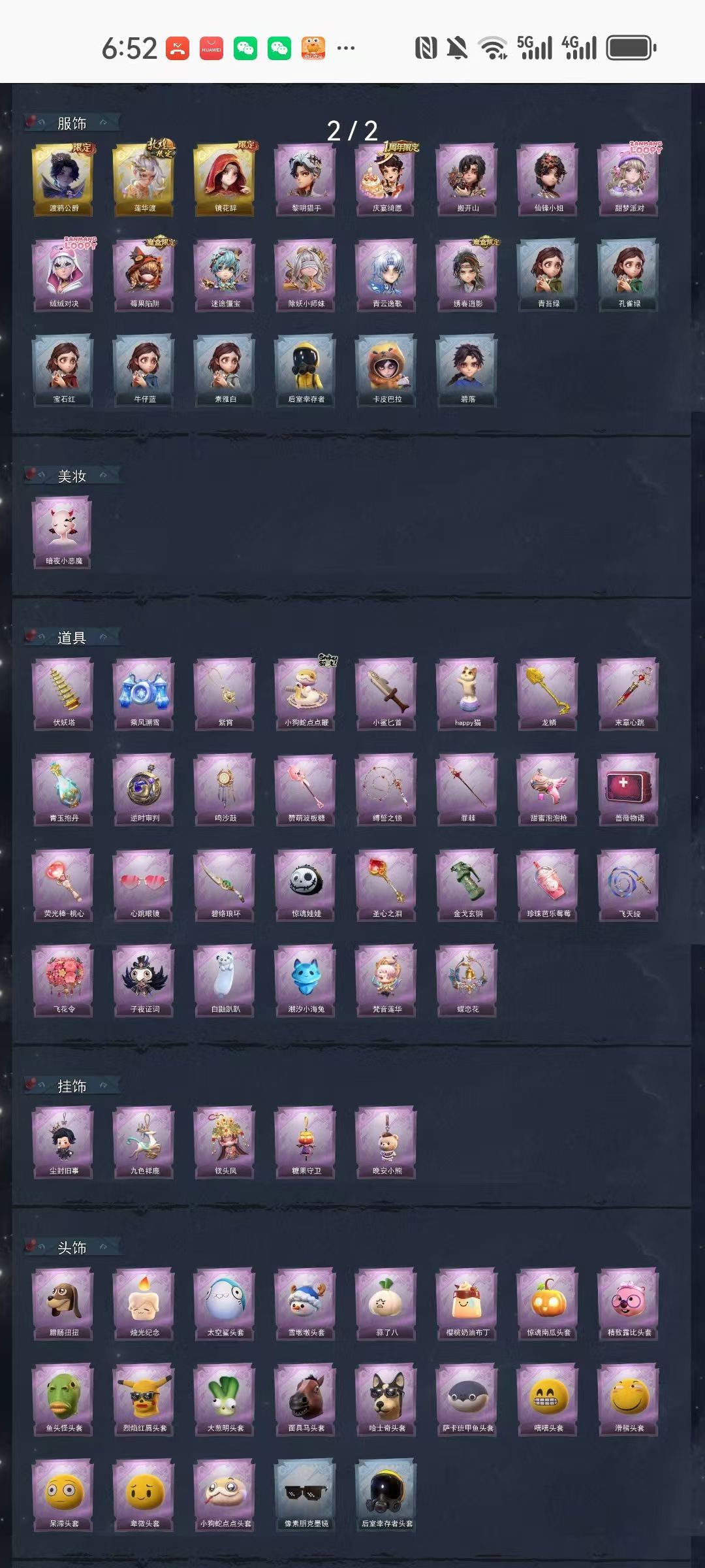 装备描述:【金色皮肤】零-渡鸦公爵、逍遥-莲华渡、巫铃儿-镜花辞 【紫色皮肤】艾伦-黎明猎手、阿念-庆宴绮愿、零-搬开山、薇薇安-仙锋小姐、爱丽丝-甜梦派对、艾伦-绒绒对决、莉莉-莓果陷阱、阿念-迷途僵宝、莉莉-除妖小师妹、零-青云逸歌、逍遥-绣春逍影 【道具皮肤】葫芦-伏妖塔、喷气背包-乘风溯雪、摸金符-紫霄、长鞭-小狗蛇点点鞭、刺刀-小鲨匕首、音响-happy猫、铲子-龙鳞、急救包-末章心跳、黄牛能量饮料-青玉抱丹、传送按钮-逆时审判、音响-鸣沙鼓、铲子-赞萌波板糖、长鞭-缚誓之锁、电击枪-甜蜜泡泡枪、急救包-蔷薇物语、夜视仪-心跳眼镜、刺刀-碧络琅环、腰包-惊魂娃娃、铲子-圣心之泪、闪光弹-金戈玄铜、黄牛能量饮料-珍珠芭乐莓莓、长鞭-飞天绫、额外的背包-飞花令、背饰-子夜证词、背饰-白鼬趴趴、背饰-潮汐小海兔、背饰-梵音莲华、背饰-蝶恋花 【美妆】暗夜小恶魔 【载具】惊奇万圣涂装