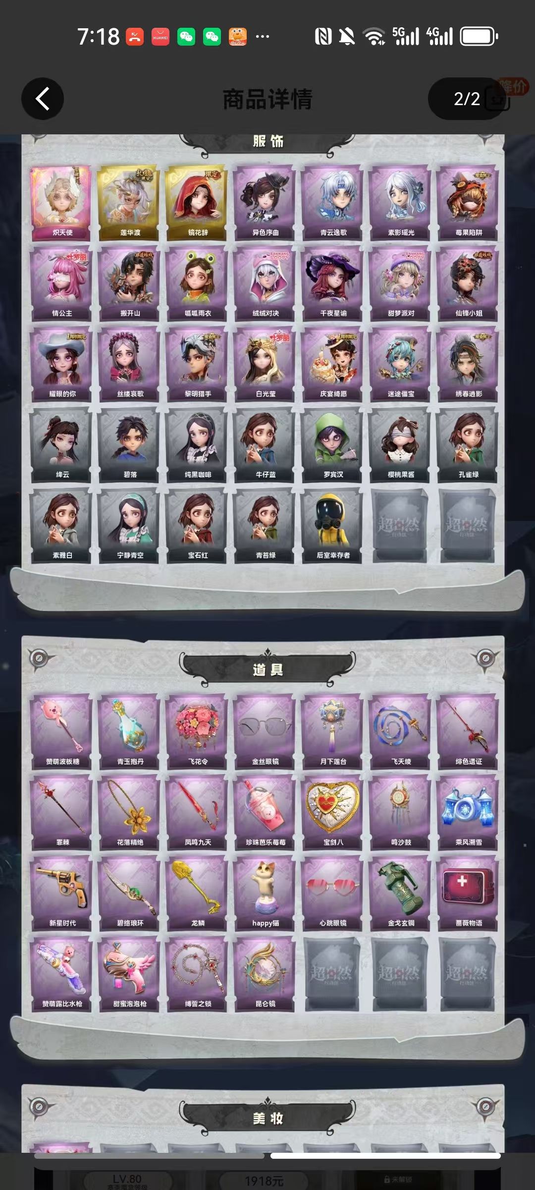 装备描述:皮肤:小黄-炽天使,逍遥-莲华渡,巫铃儿-镜花辞,小黄-异色序曲,零-青云逸歌,巫铃儿-素影瑶光,莉莉-莓果陷阱,莉莉-情公主,零-搬开山,小黄-呱呱雨衣,艾伦-绒绒对决,兰-千夜星谕,爱丽丝-甜梦派对,薇薇安-仙锋小姐,爱丽丝-耀眼的你,爱丽丝-丝缕哀歌,艾伦-黎明猎手,薇薇安-白光莹,阿念-庆宴绮愿,阿念-迷途僵宝,逍遥-绣春逍影;道具:铲子-赞萌波板糖,黄牛能量饮料-青玉抱丹,额外的背包-飞花令,夜视仪-金丝眼镜,腰包-月下莲台,长鞭-飞天绫,桃木剑-绯色遗证,长枪-罪棘,摸金符-花落精绝,桃木剑-凤鸣九天,黄牛能量饮料-珍珠芭乐莓莓,腰包-宝剑八,音响-鸣沙鼓,喷气背包-乘风溯雪,转轮手枪-新星时代,刺刀-碧络琅环,铲子-龙鳞,音响-happy猫,夜视仪-心跳眼镜,闪光弹-金戈玄铜,急救包-蔷薇物语,短管猎枪-赞萌露比水枪,电击枪-甜蜜泡泡枪,长鞭-缚誓之锁,传送按钮-昆仑镜;美妆:美妆-暗夜小恶魔3金