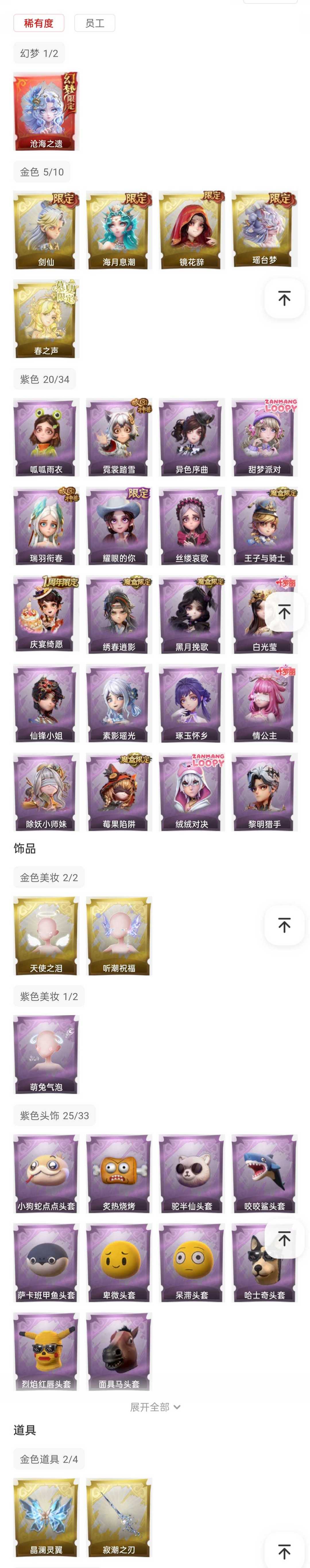 装备描述:累充】47490金砖 【赛季魔盒】普通魔盒 【员工】爱丽丝、零、阿念、逍遥、薇薇安、巫铃儿、莉莉、艾伦、爱德华、兰、小满、临云、小黄 【幻梦皮肤】薇薇安-沧海之遗 【金色皮肤】逍遥-剑仙、兰-春之声、薇薇安-海月息潮、莉莉-瑶台梦、巫铃儿-镜花辞 【紫色皮肤】艾伦-黎明猎手、巫铃儿-琢玉怀乡、阿念-庆宴绮愿、爱丽丝-耀眼的你、薇薇安-仙锋小姐、爱丽丝-甜梦派对、艾伦-绒绒对决、莉莉-莓果陷阱、小黄-异色序曲、莉莉-除妖小师妹、薇薇安-黑月挽歌、阿念-王子与骑士、莉莉-情公主、薇薇安-白光莹、爱丽丝-瑞羽衔春、小黄-霓裳踏雪、巫铃儿-素影瑶光、爱丽丝-丝缕哀歌、逍遥-绣春逍影、小黄-呱呱雨衣 【道具皮肤】喷气背包-晶澜灵翼、长鞭-新春炸响、刺刀-赤色之刃、黄牛能量饮料-无人岸、急救包-末章心跳、铲子-赞萌波板糖、额外的背包-灵感泉之花、急救包-土拨鼠捏捏、短管猎枪-星光的裁决、电击枪-权杖的许诺、刺刀-小鲨匕首、传送按钮-昆仑镜、刺刀-铂刺与红萼、刺刀-美鲨匕首、桃木剑-凤鸣九天、摸金符-海洋之心、转轮手枪-新星时代、铲子-龙鳞、桃木剑-永眠曲、铲子-卡皮巴拉小黄豚铲、音响-月光奏鸣曲、